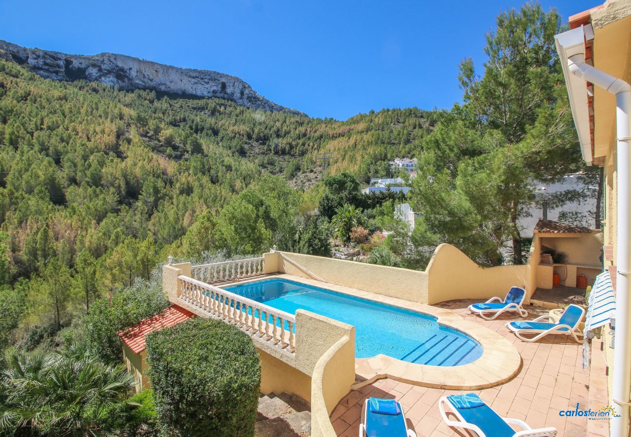 Ein ruhiges, sehr komfortables, Ferienhaus in den Bergen von Denia. Das Haus verfügt über viele Möglichkeiten Sonne und Schatten zu genießen. Die angenehmen Nachmittagswinde sind erfrischend, jedoch nach Intensität nicht immer geeignet, abends auf der Terrasse zu speisen.