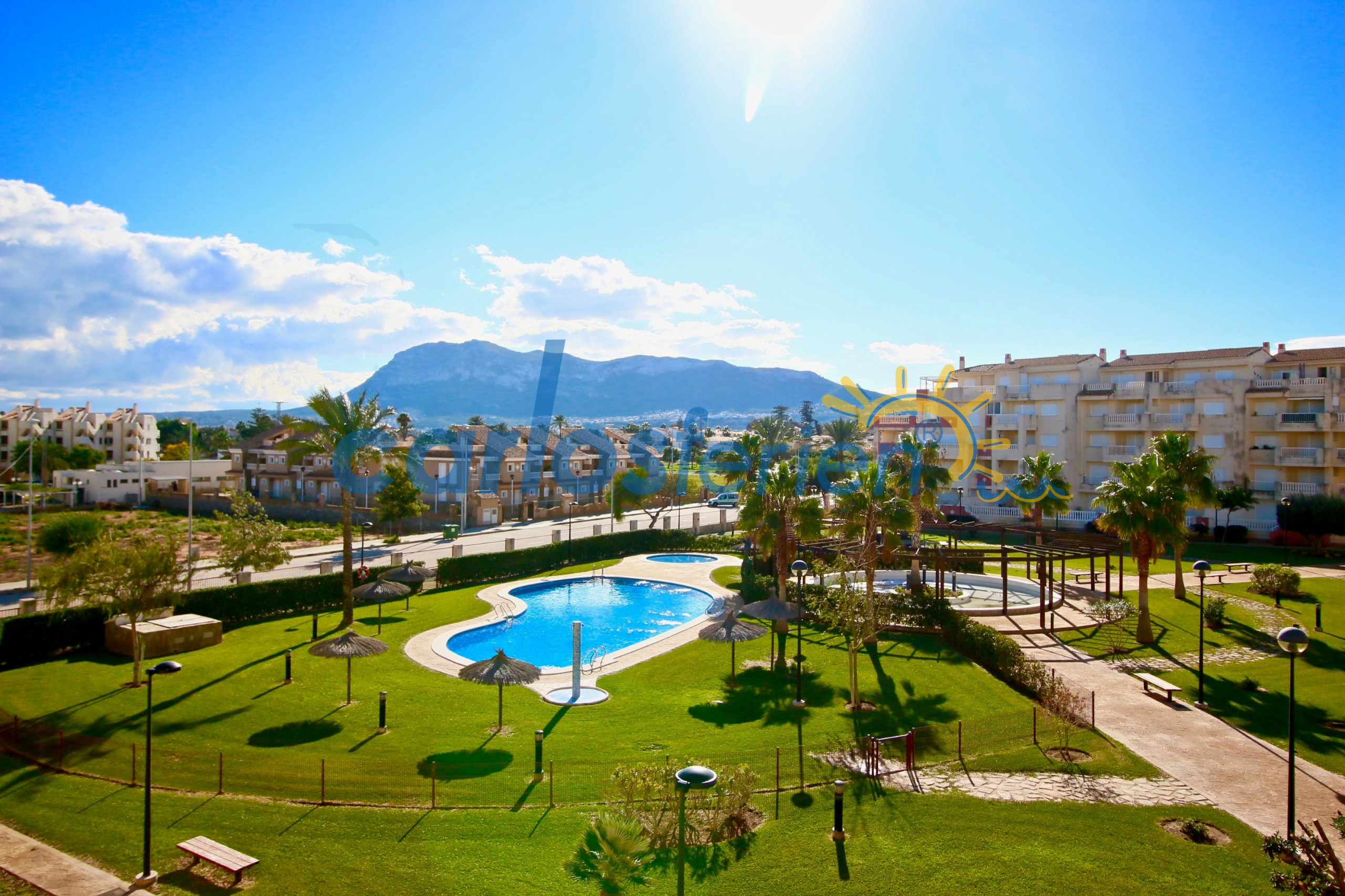 Die Wohnung mit einer Wohnfläche von 90 m² zeichnet sich durch ihre hervorragende Südausrichtung aus, die das ganze Jahr über natürliches Licht und eine warme, einladende Atmosphäre in jeder Jahreszeit garantiert. Sie verfügt über ein Hauptschlafzimmer mit Badezimmer en suite, ein zweites Doppelschlafzimmer, ein zusätzliches vollständiges Badezimmer, eine separate Küche mit Galerie und Waschmaschinenbereich sowie ein geräumiges Wohn-Esszimmer mit direktem Zugang zu einer privaten Terrasse mit offenen Blicken auf den Gemeinschaftspool und den Montgó.