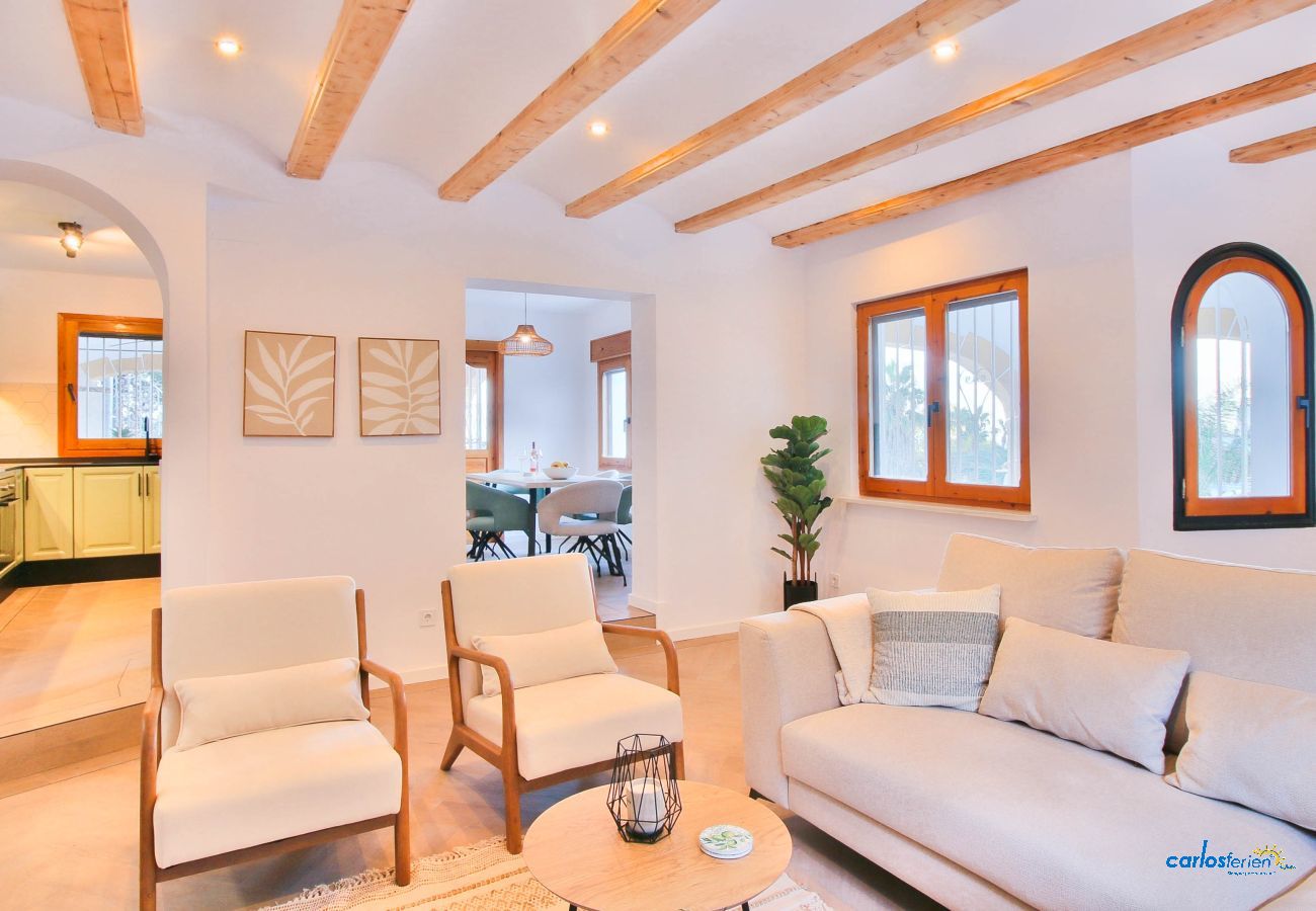 Entzückendes Ferienhaus, kürzlich komplett renoviert in Denia, perfekt für Familien und Paare, gelegen in einer privilegierten Berglandschaft mit atemberaubenden Blicken auf das Meer und die Berge. Diese 150m² große Unterkunft bietet einen gemütlichen und vollständig ausgestatteten Raum, um unvergessliche Ferien zu genießen.