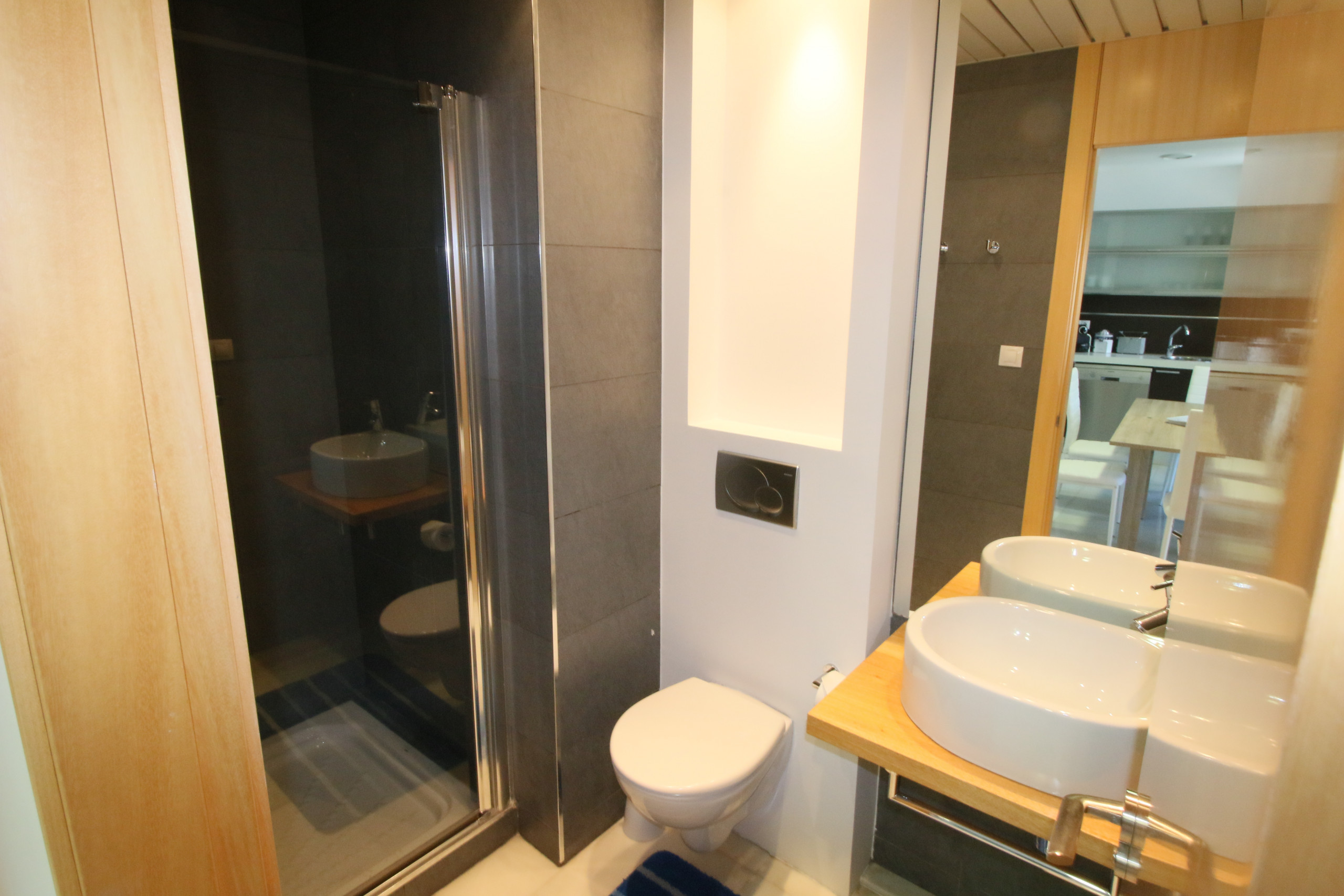 There are two double bedrooms with one big bed in each one and another room with two individual beds. The apartment has dos bathrooms, one with shower and other one inside a room.