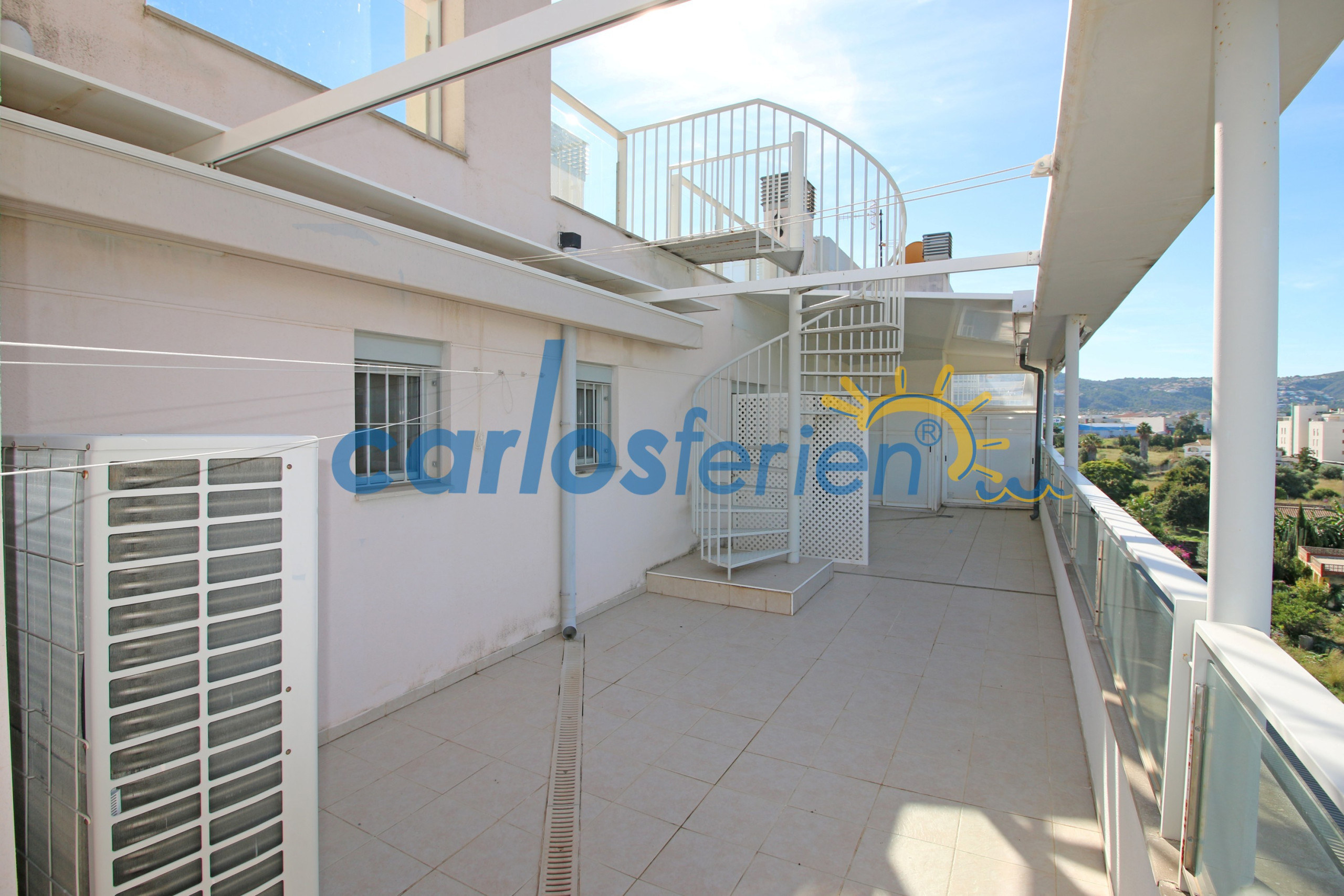 Découvrez ce magnifique attique à vendre dans une urbanisation privée exclusive à Dénia. Construit en 2006 et en bon état de conservation, il offre 100 m² de logement et 160 m² de terrasses, comprenant un large solarium avec vue sur la mer et le château de Dénia. La propriété dispose de 3 chambres, 2 salles de bains (dont une en suite), un salon-salle à manger avec sortie directe sur la terrasse, une cuisine indépendante, un débarras et une place de parking incluse.